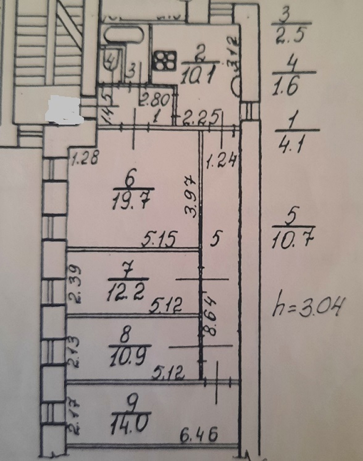 Высота потолков 3.04 м