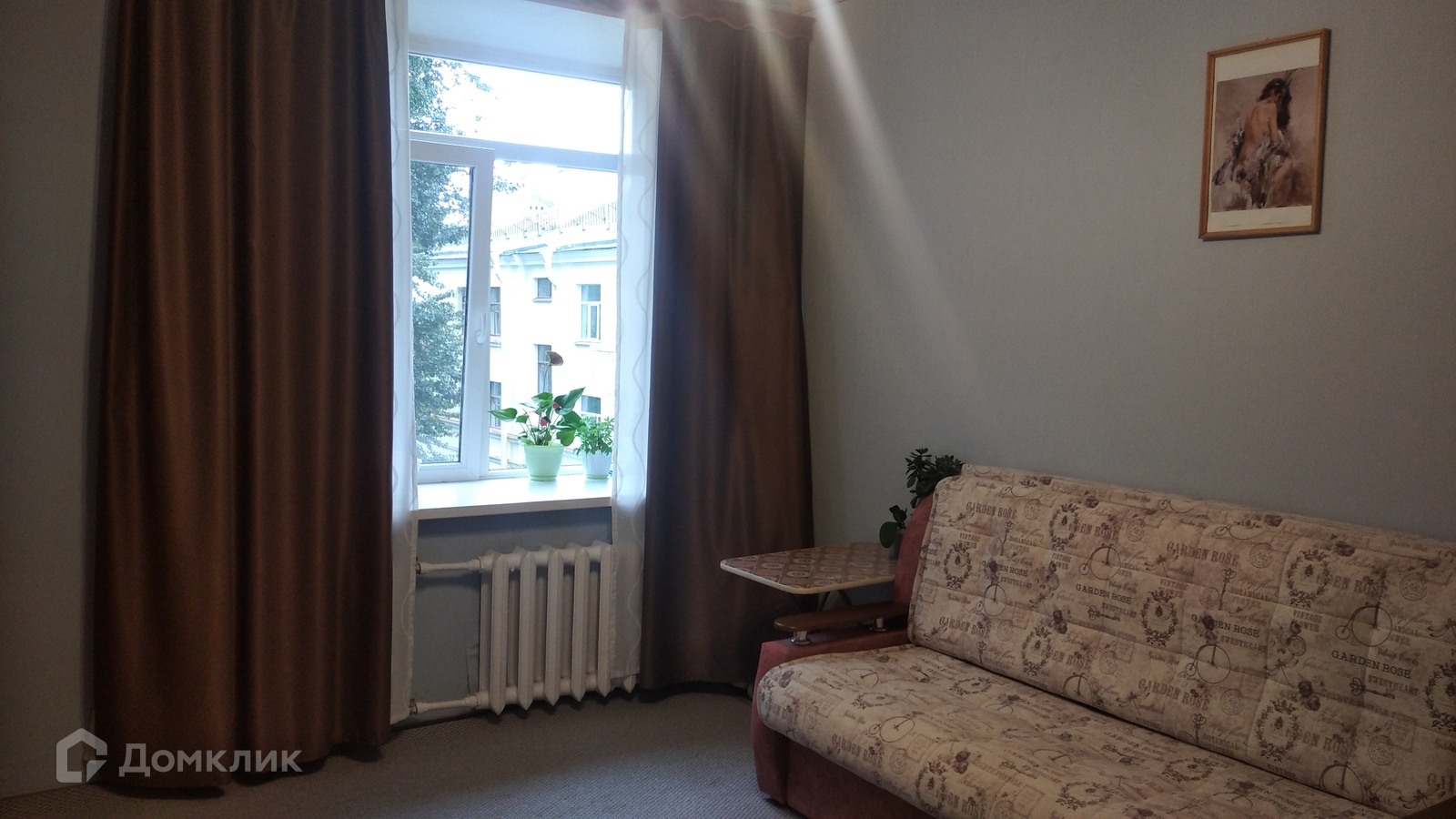 Окно комнаты выходит в тихий зеленый двор. На кухне выделена своя зона для холодильника и стиральной машины. Санузел раздельный.