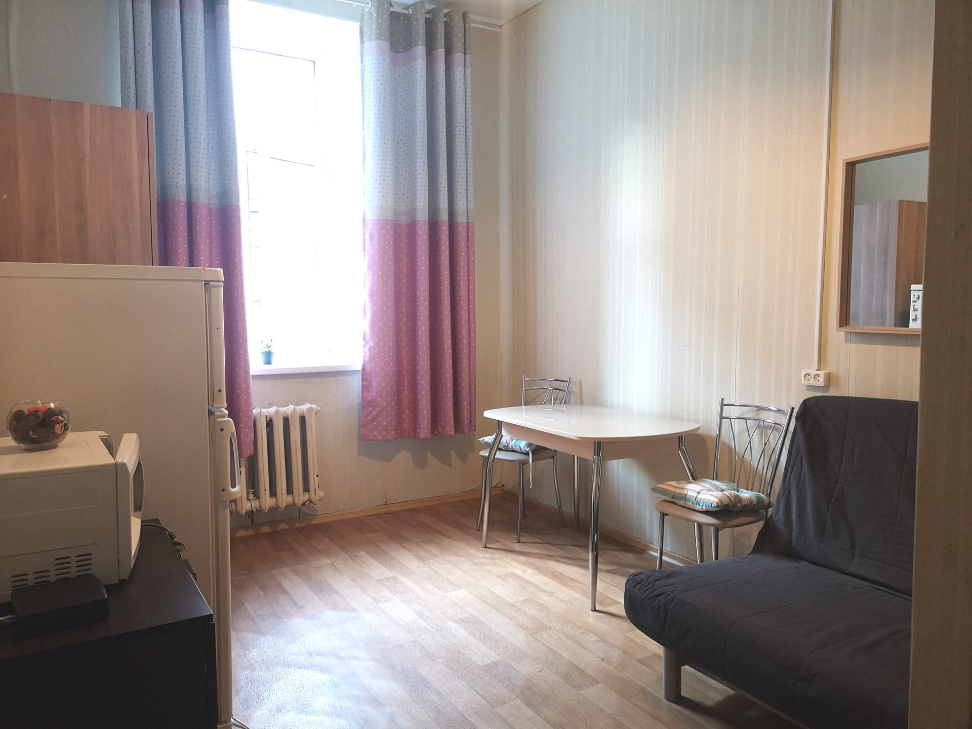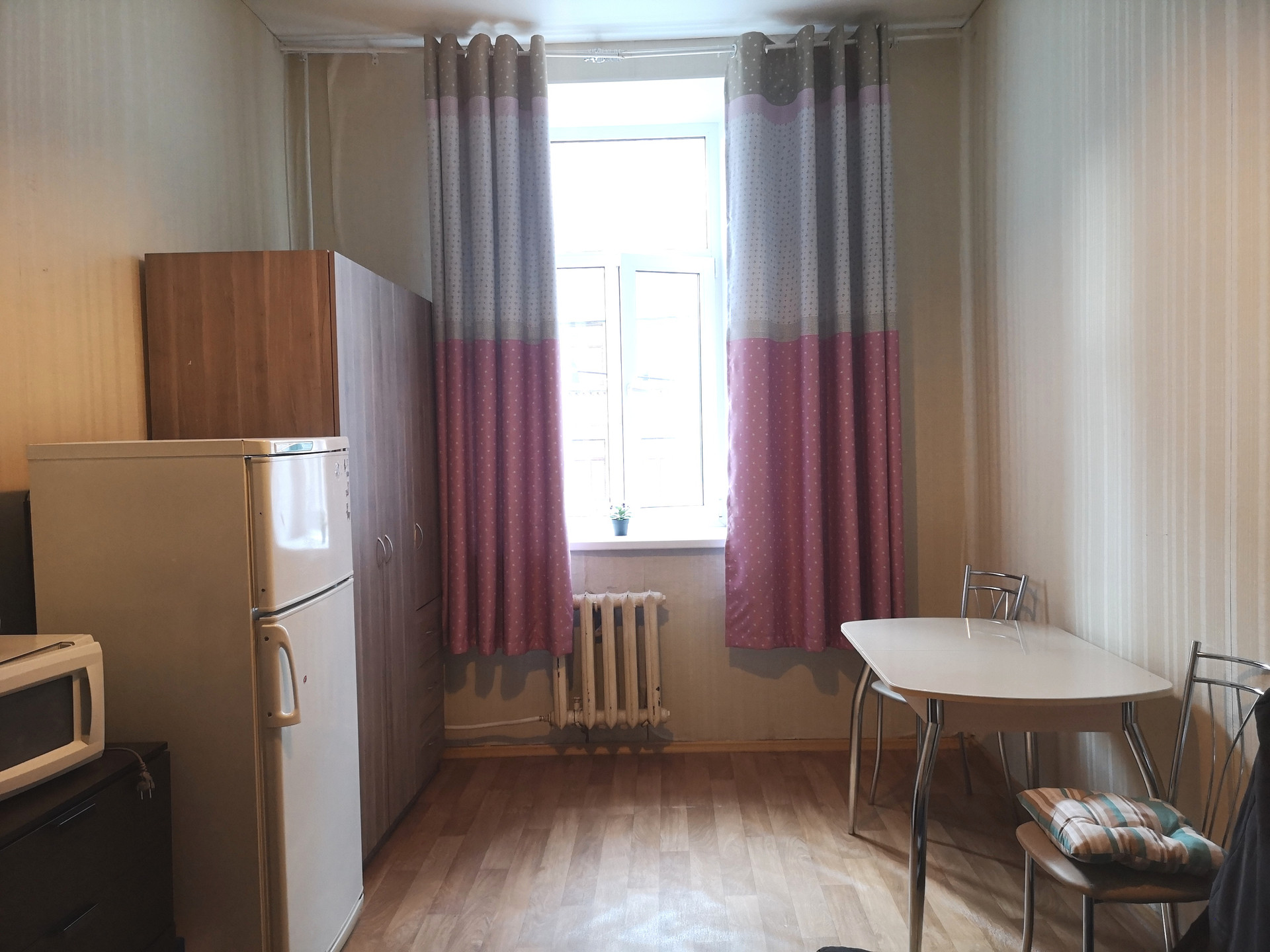 О КОМНАТЕ: теплая, светлая, установлены стеклопакеты, чистая, уютная, с видом на Марата. Удобно, что вход в комнату имеет небольшой тамбур с дополнительными дверьми на две комнаты, где можно обустроить себе шкаф.