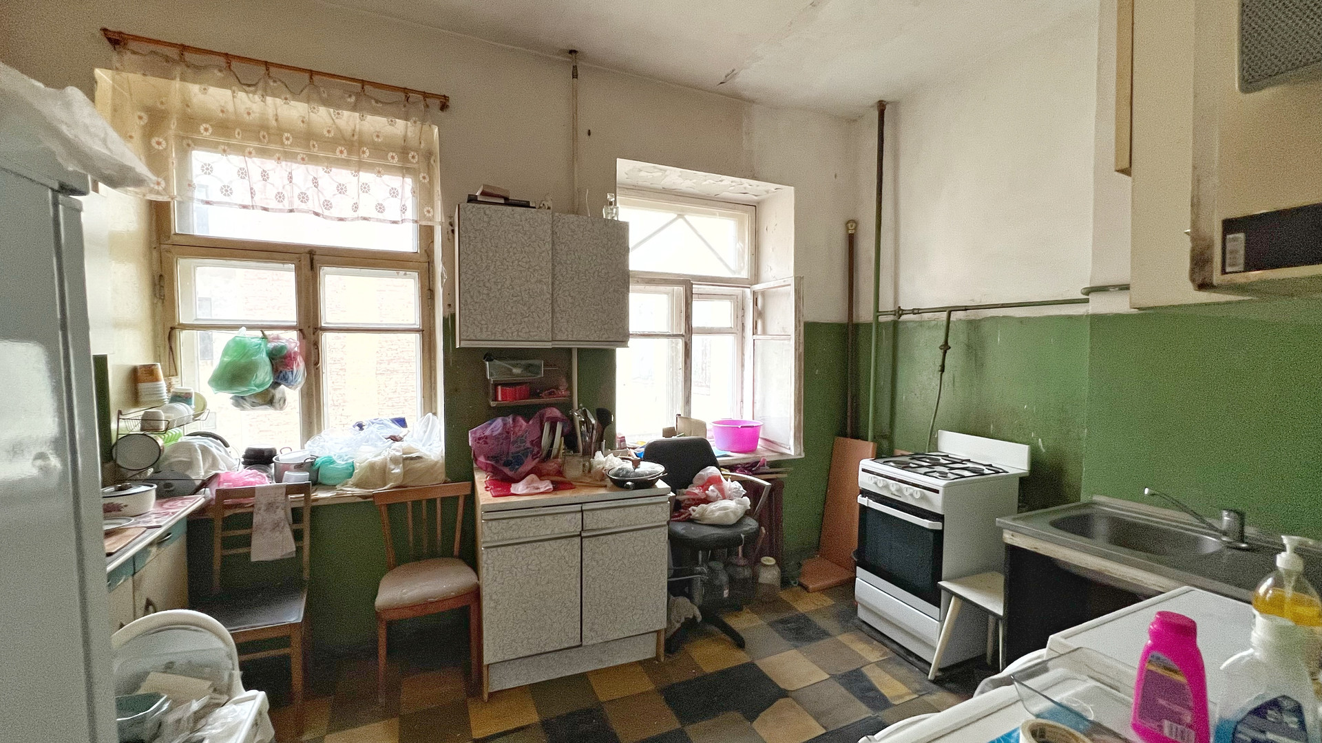 К комнате относится самая большая кладовка и глубокая ниша напротив двери. Своё рабочее место на кухне. С/у раздельный, полноценная ванна. Соседи не против складываться на ремонт, начинали с санузла своими силами. Соседей всего 2 человека: мужчина и женщина в возрасте.