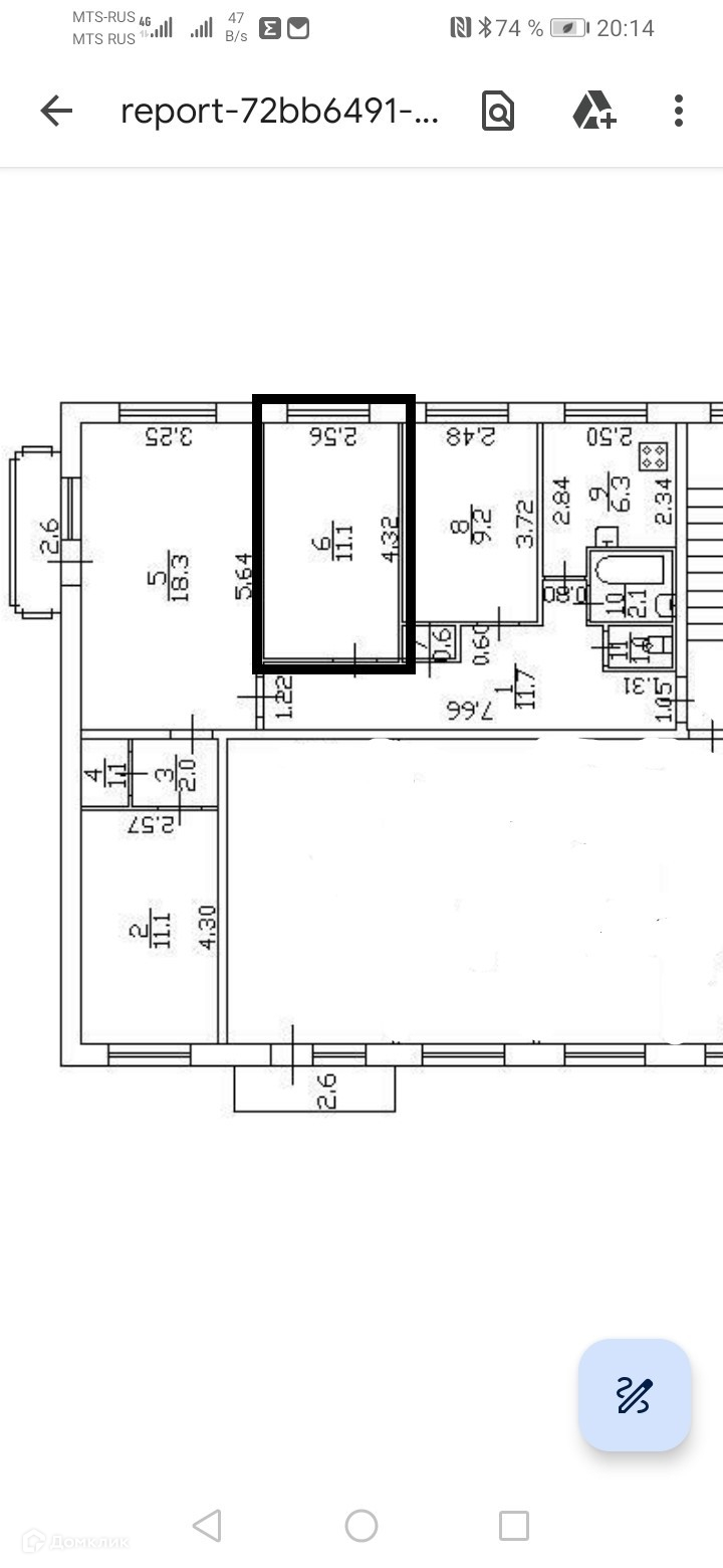 Площадь 11,1 кв.м (доля 11/50), не коммунальная квартира!
