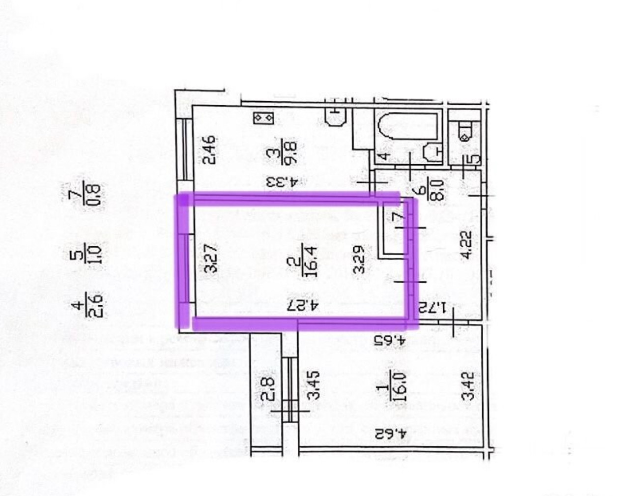 Площадь продаваемой комнаты 16,4 м2.