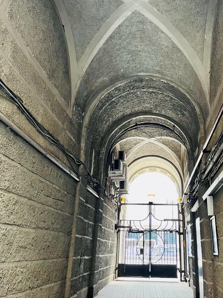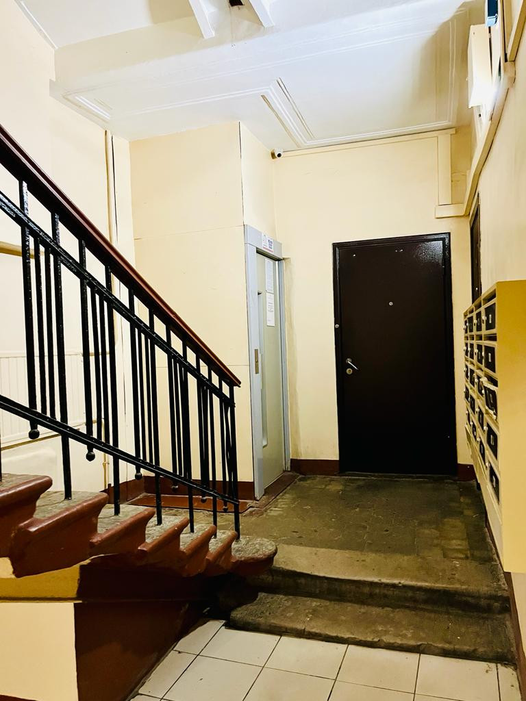 Вход со двора, окна во двор. Лифт.