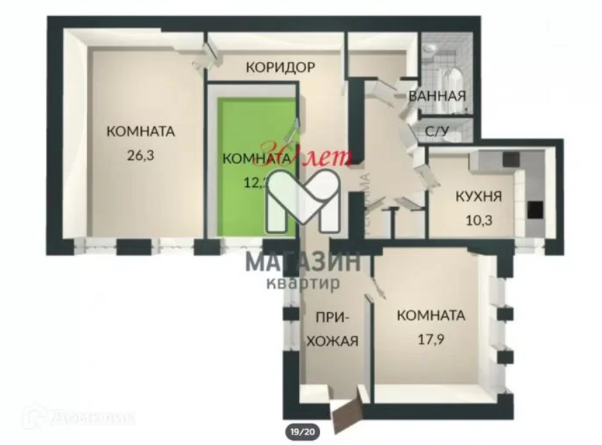С/У раздельный: ванна и туалет отдельными комнатами.