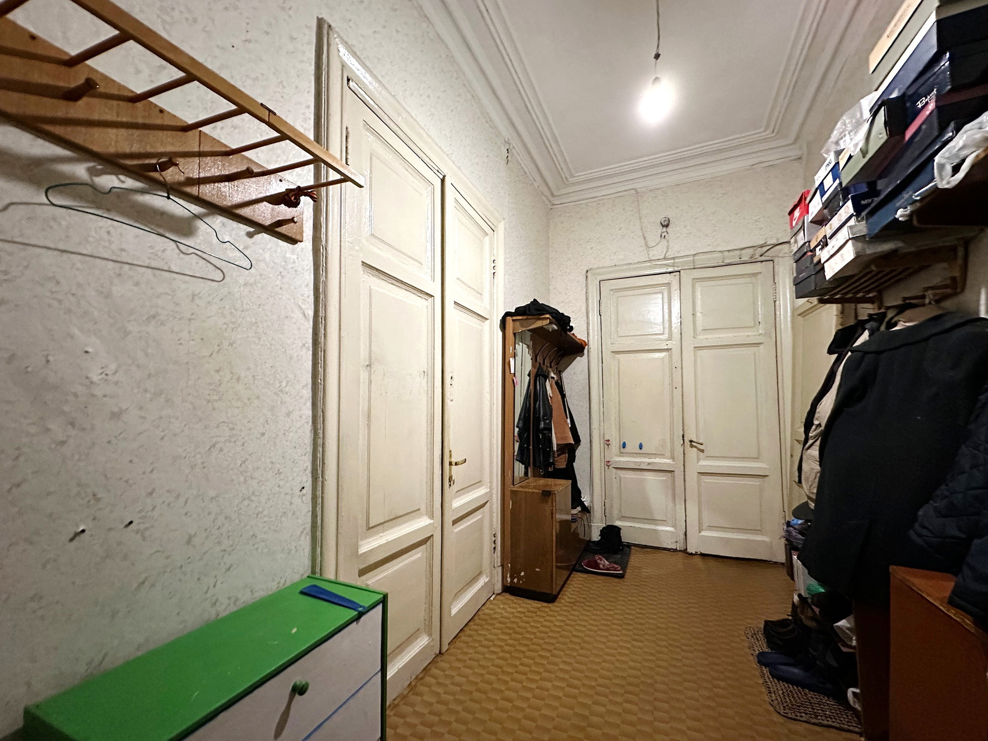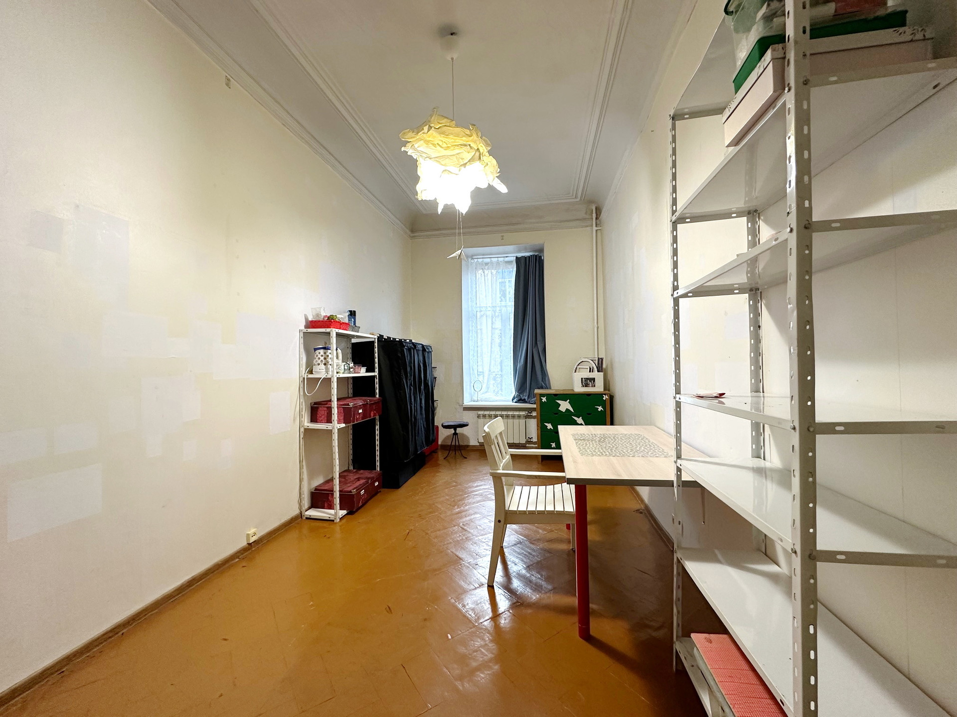 Продается комната 17 кв. м в малонаселенной квартире общей площадью 167,2 кв. м. В квартире кроме собственника, проживают четыре человека. Комната светлая, окно выходит в зеленый двор. В комнате сделан косметический ремонт, установлен стеклопакет, заменены батареи. Места общего пользования, сан/узлы в хорошем состоянии. Отопление центральное, в ванной - газовая колонка, горячая вода есть всегда. Также в квартире есть общая комната для хранения вещей. В квартире имеется два входа: парадный с широкой лестницей и вход со двора. До метро Звенигородская 5 минут пешком, до метро Владимирская - 10 минут. Дом расположен в приятном районе, вокруг множество кафе, ресторанов, магазинов, до Невского проспекта около 15 минут пешком. Комната в собственности более 5 лет, без обременений, прямая продажа, нотариальные отказы от других собственников имеются, в комнате никто не зарегистрирован.