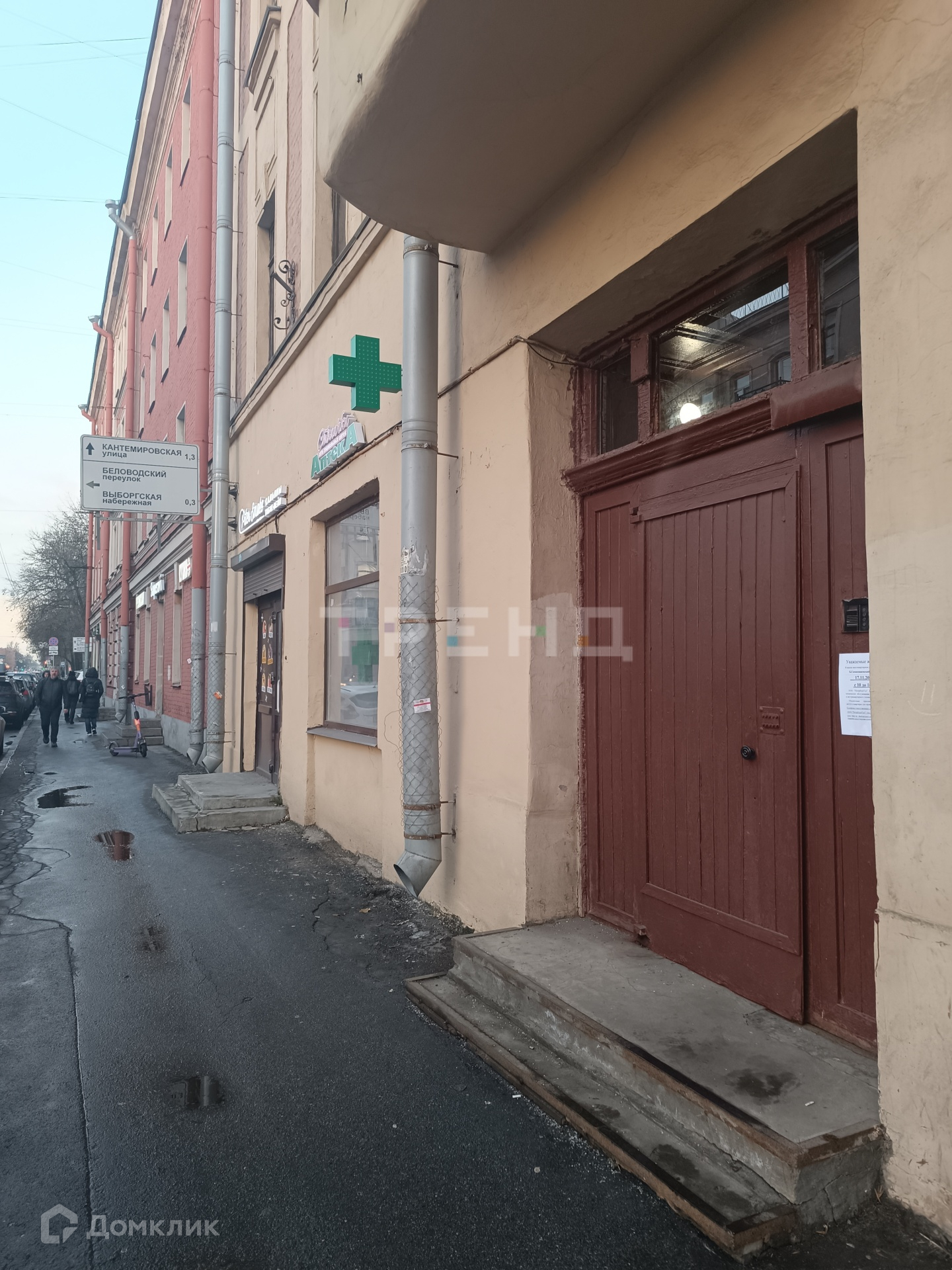 С обратной стороны дома расположена городская поликлиника, открытая парковка, в непосредственной близости - продуктовые и хозяйственные магазины, аптеки, пекарни храмы и объекты культуры и образования. Всего 400 метров до ближайшего метро - Выборгская. Рядом Финляндский вокзал, Сапсониевский и Ботанический сады.