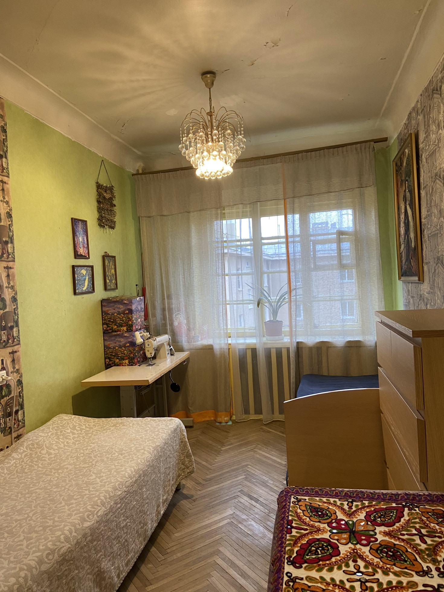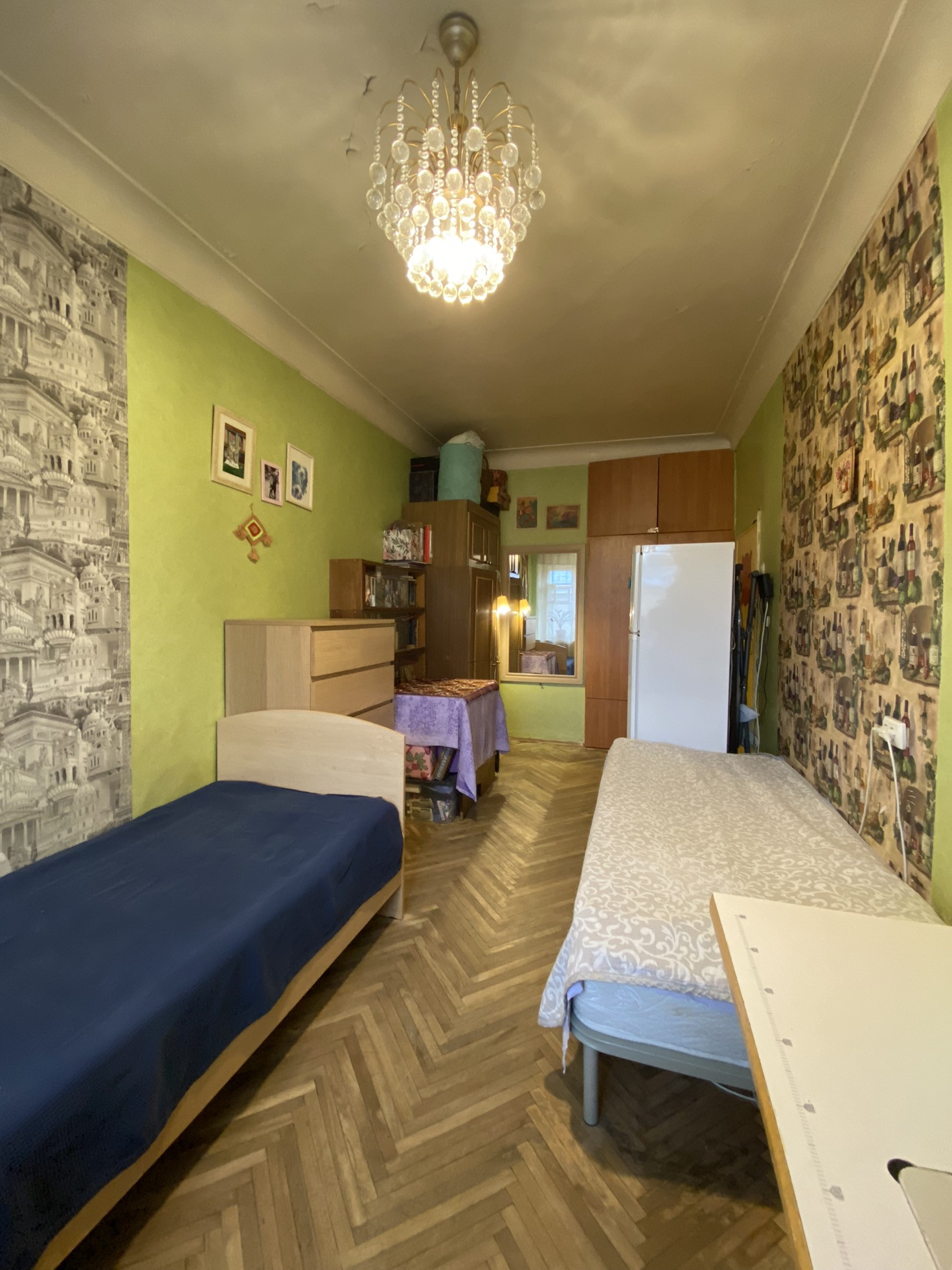 Продаются две комнаты 15+18,7 м в кирпичном доме. Комнаты с косметическим ремонтом, тёплые. Пол паркет. Потолки 2,9м. Окна на две стороны. Планировка позволяет объединить комнаты и обустроить жилое пространство с отдельной столовой-гостиной и спальней. Соседняя комната закрыта. Там никто не проживает.