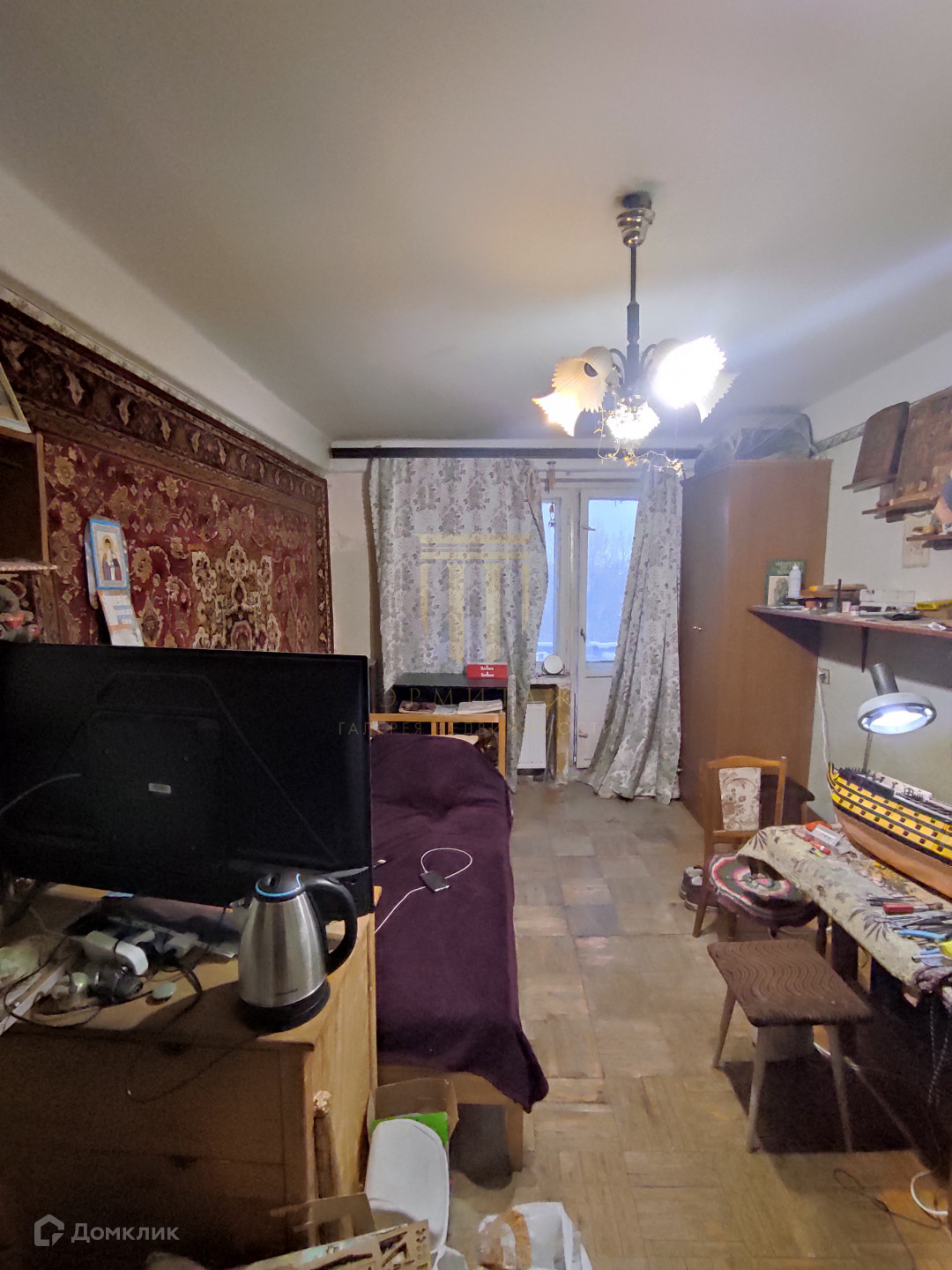 В комнате паркет, есть балкон, окна выходят во двор.