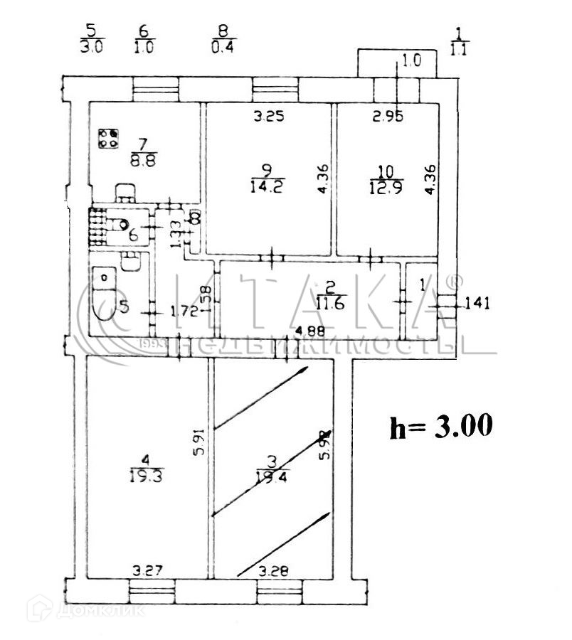 Высота потолков 3 м