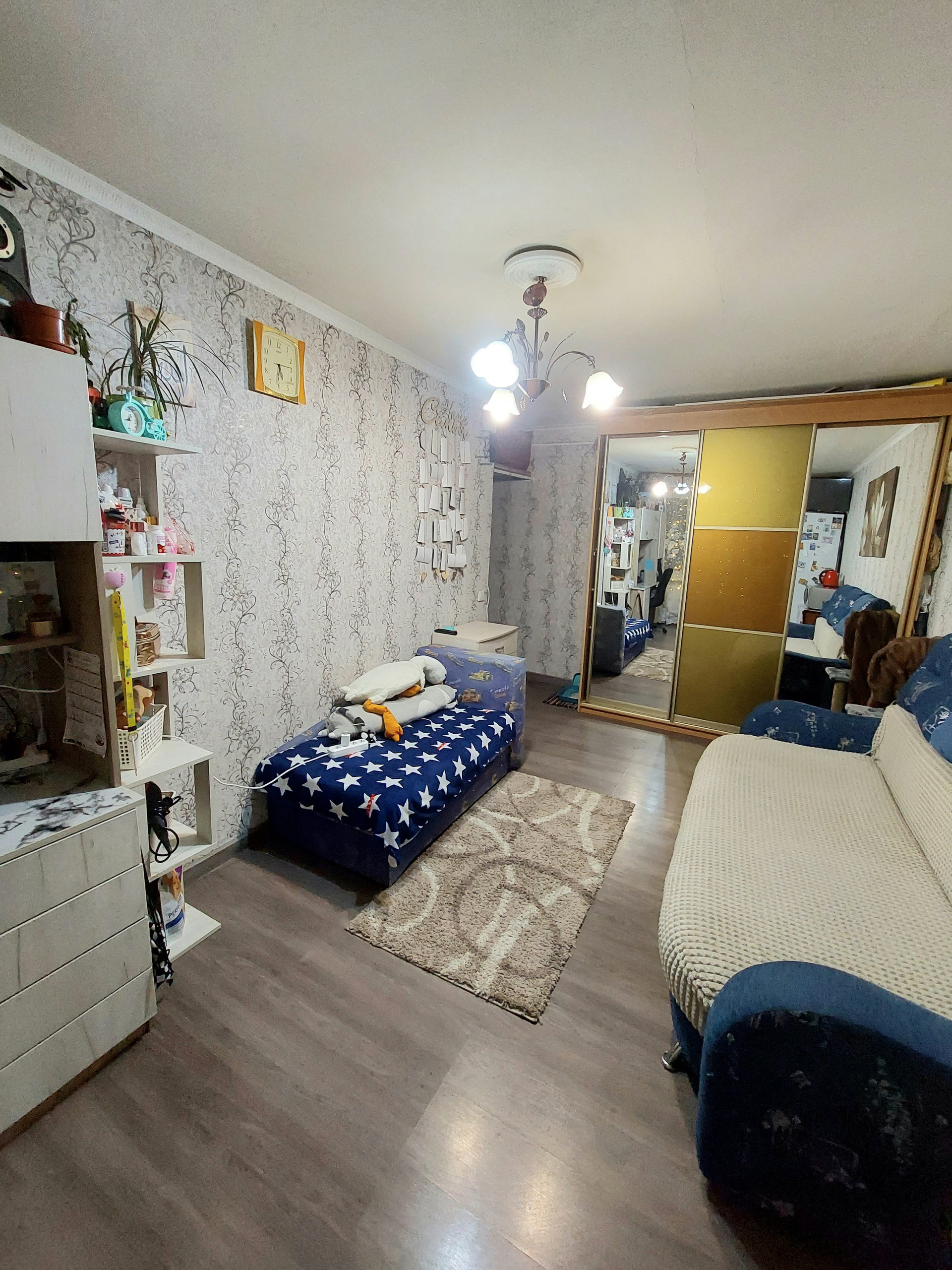 Продается большая комната 18,1 кв.м. плюс гардеробная 0,3 кв.м. По итогу общая площадь 18,4 кв.м. Комната правильной формы с эркером.