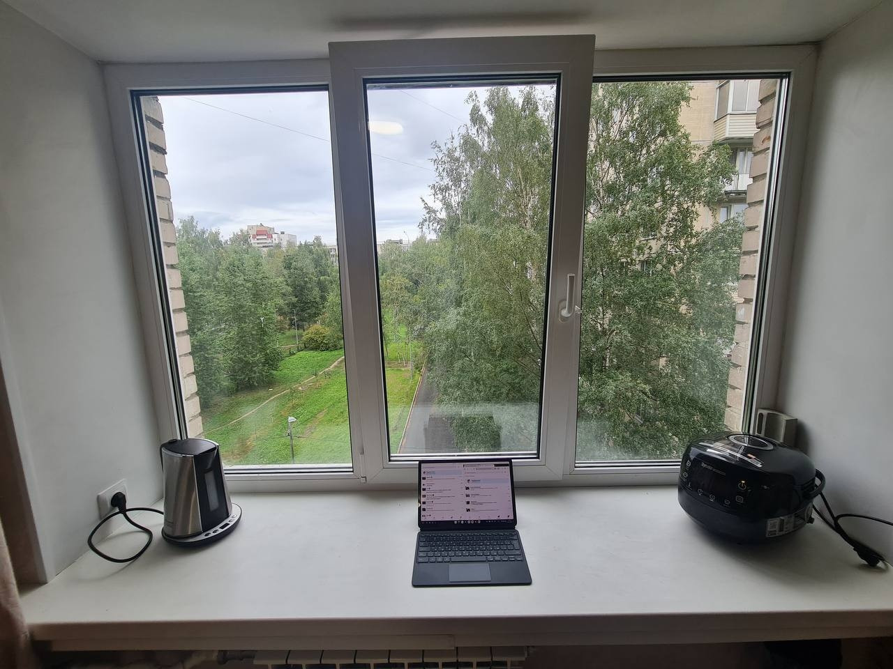 Окно комнаты выходит на детский сад