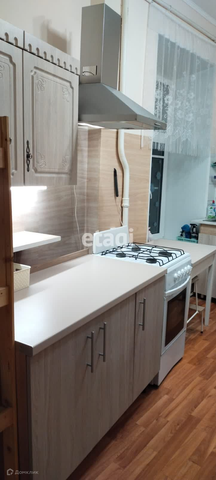 Комната в хорошем состоянии, сделан свежий ремонт, есть мебель, в том числе большой угловой шкаф. В коридоре установлены два больших шкафа. Рядом находится: