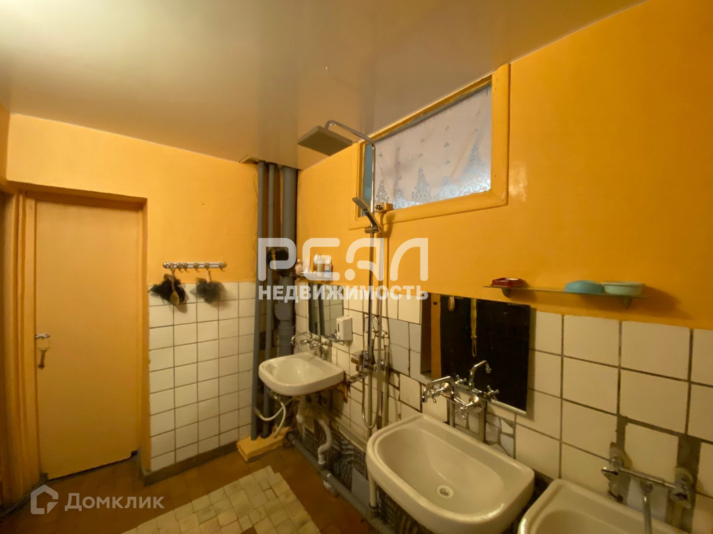 Квартира разделена на 2 блока по 4 комнаты, в каждой общая кухня 12,3 кв.м., несколько туалетов, раковин для умывания.
