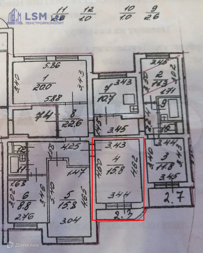 Площадь комнат