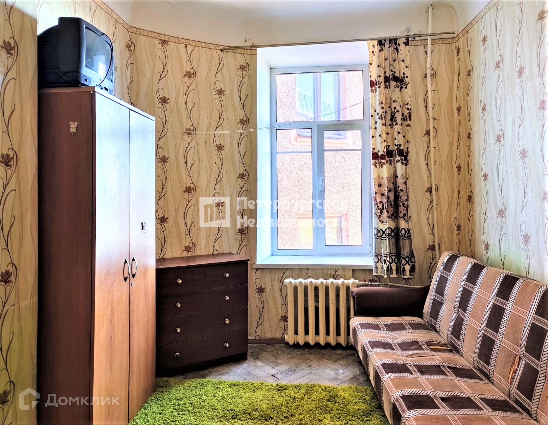 Малонаселенная коммунальная квартира (всего 6 комнат). Потолки 3,21 м., окно – пластик, на полу – паркет. Окно выходит во двор и на Большую Невку, южная сторона. Два входа – с улицы и со двора, во дворе есть парковочные места.