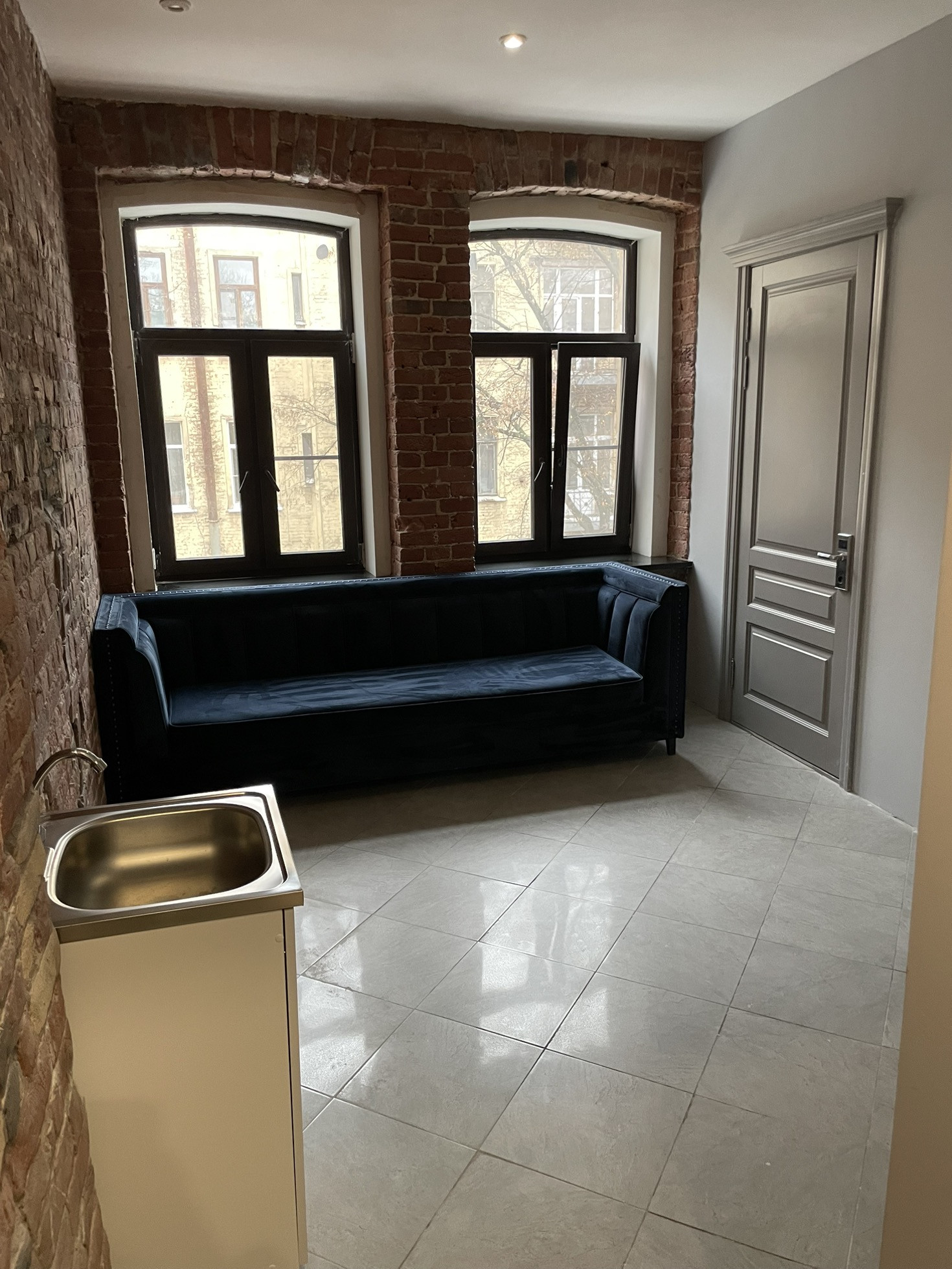 Окна выходят в тихий внутренний дворик, на небольшой сквер.