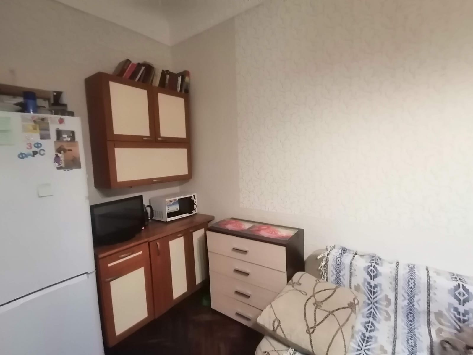 На общей кухне в распоряжении владельца ИМЕЕТСЯ ОБОСОБЛЕННАЯ КУХОННАЯ ЗОНА с установленным там кухонным гарнитуром и стиральной машиной.