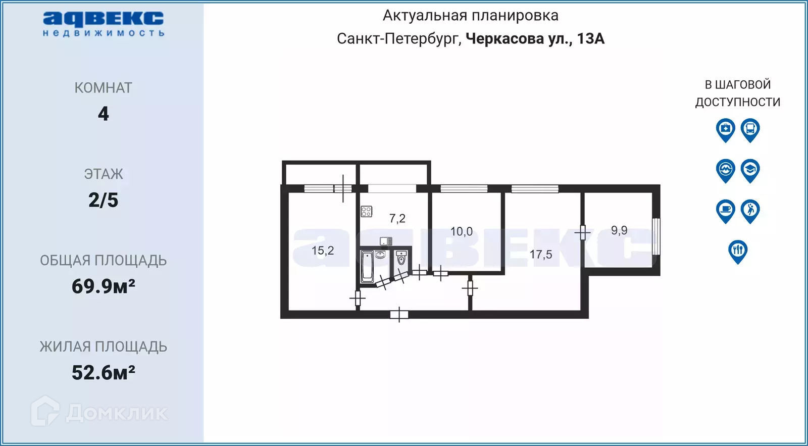 Общая площадь 69.9 м2