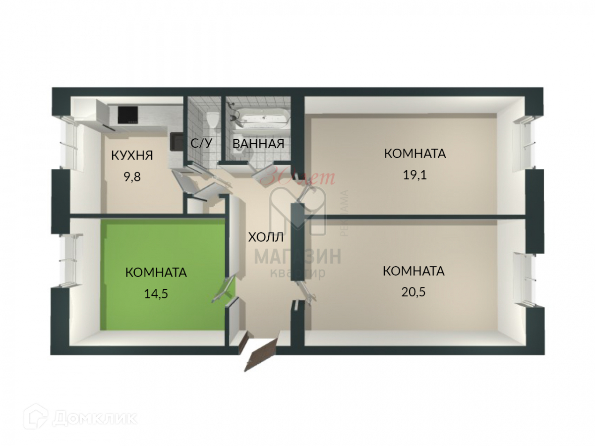Жилая площадь 14.5 м2