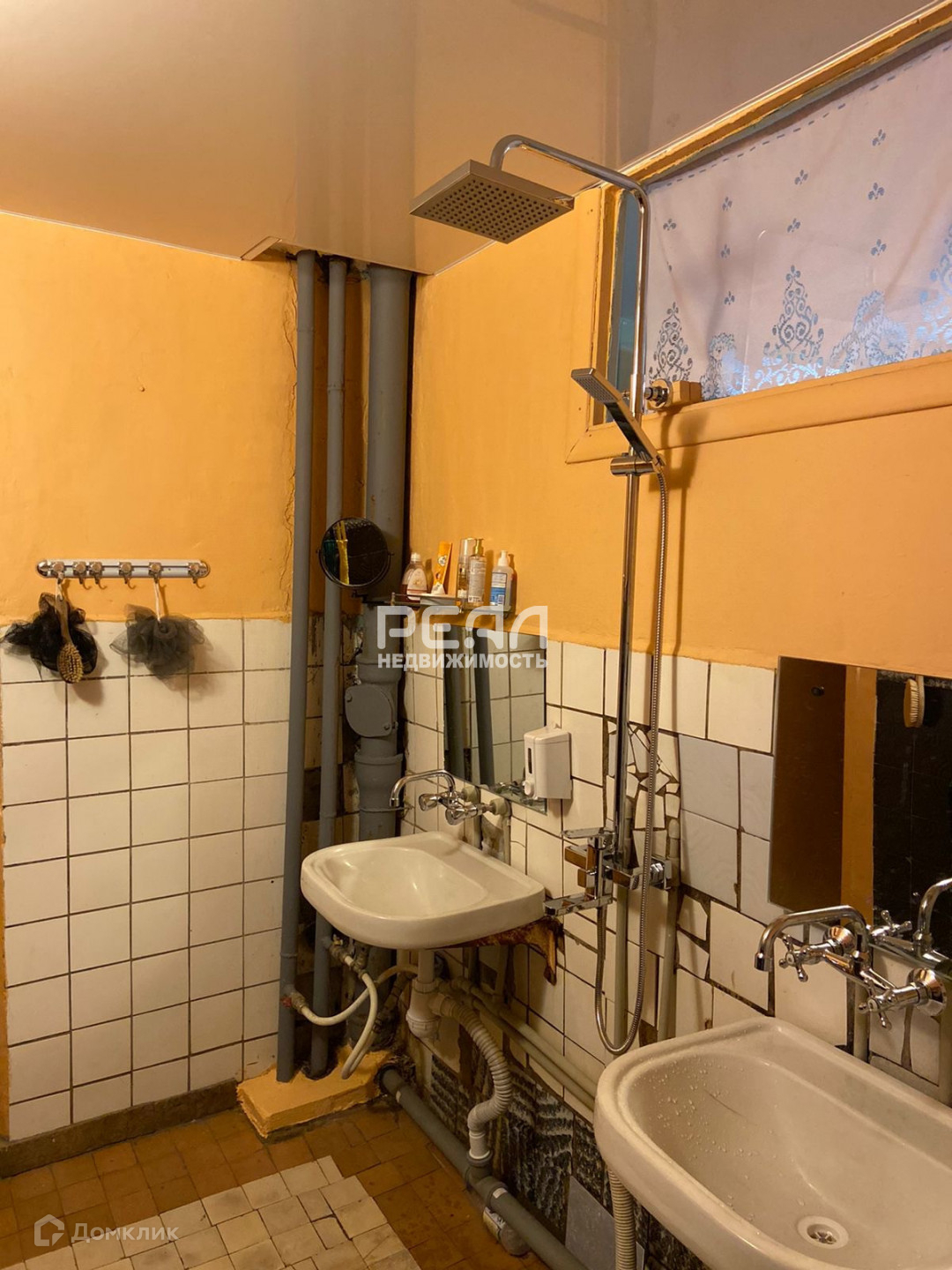 Квартира разделена на 2 блока по 4 комнаты, в каждой общая кухня 12,3 кв.м., несколько туалетов, раковин для умывания.