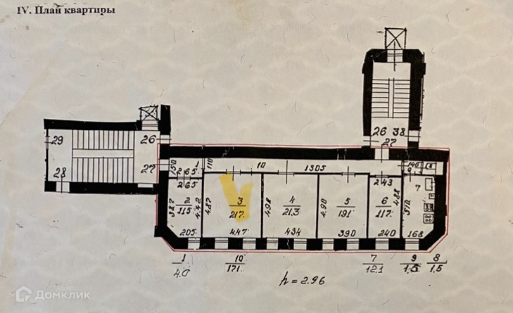 Высота потолков 2.96 м