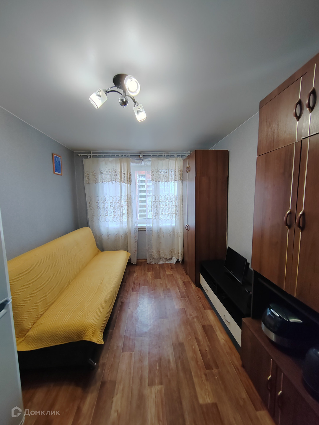 В комнате сделан косметический ремонт, натяжной потолок, вся мебель и техника как на фото остается(холодильник, стиральная машина..)