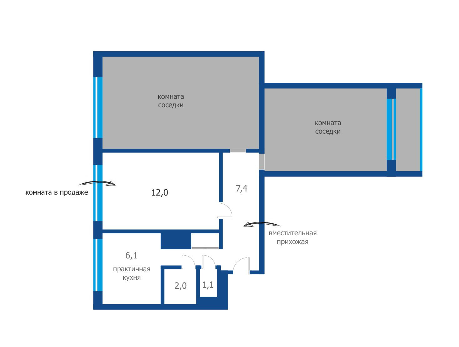 Продаётся комната в 3-х комнатной квартире, в 10 мин ходьбы от метро Пионерская