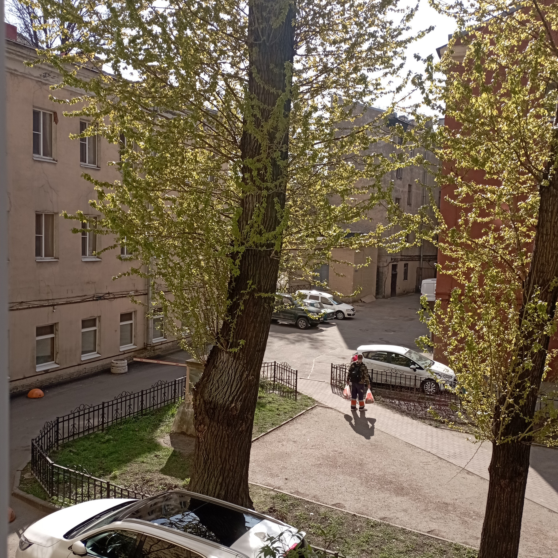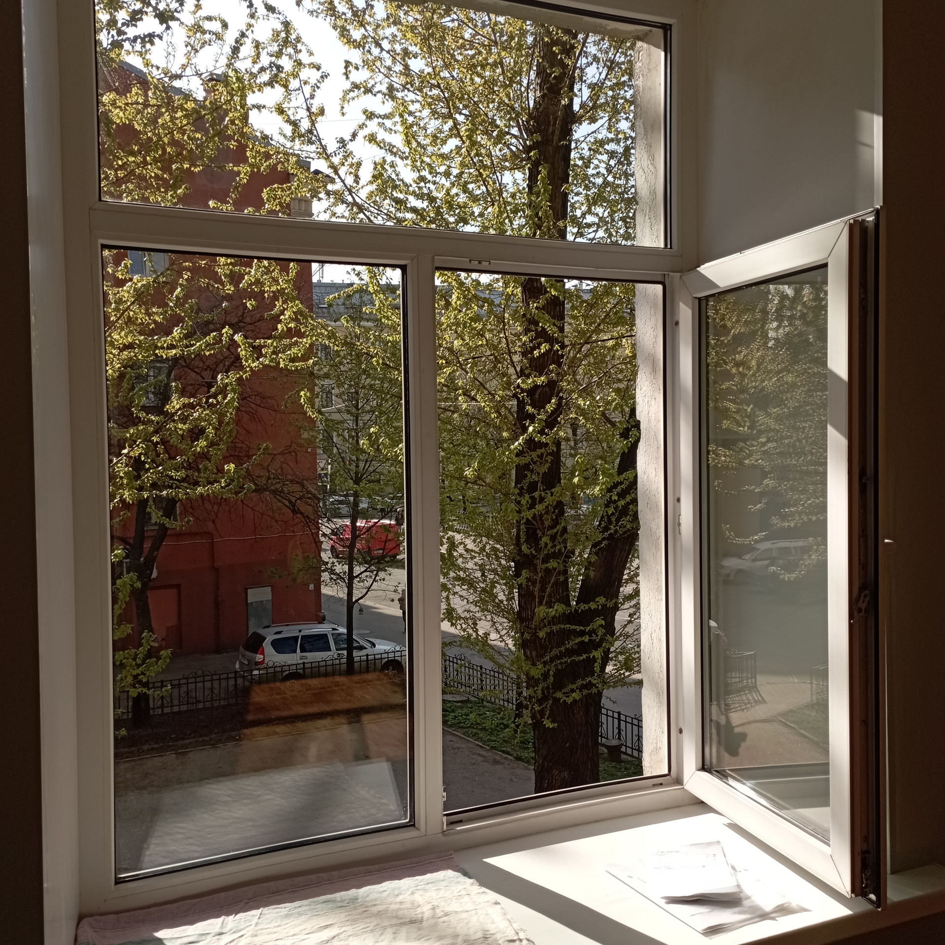 Окно выходит в тихий, спокойный сквер.