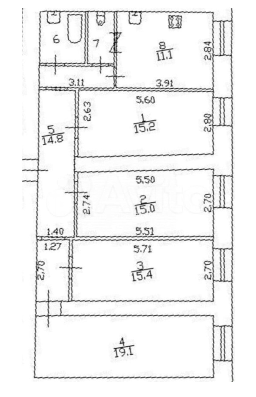 Жилая площадь 64.7 м2