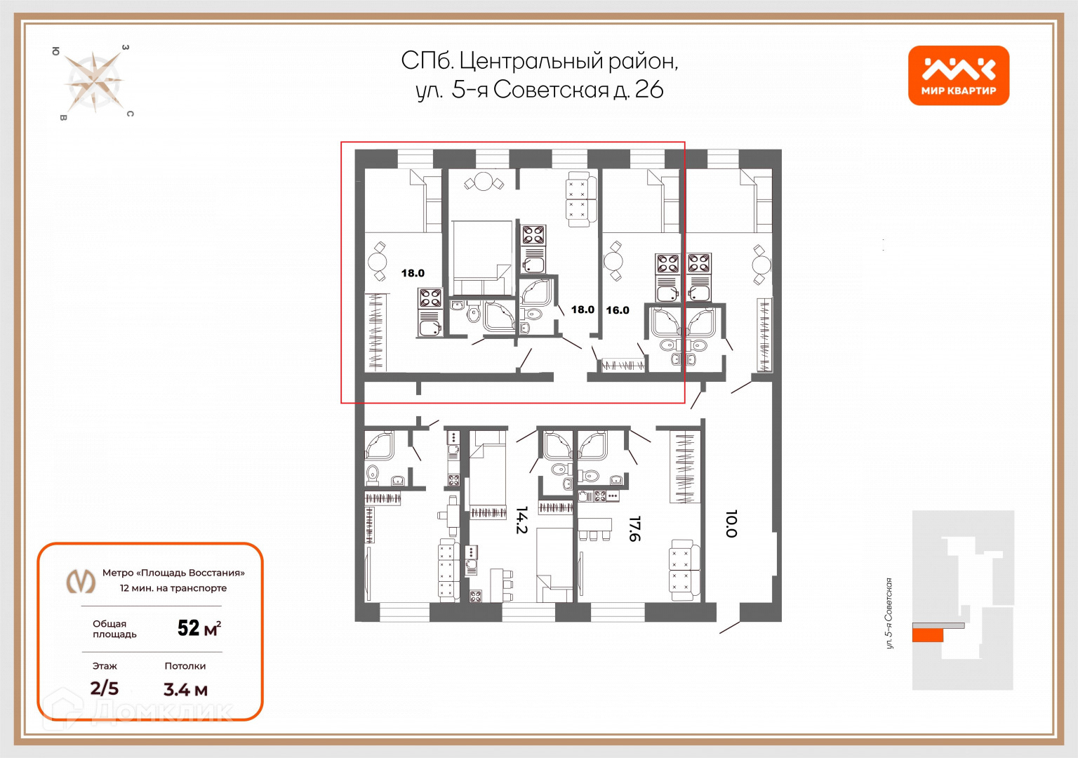 Комната, 136.2 м2, на продажу в Санкт-Петербурге, 5-я Советская улица, 26