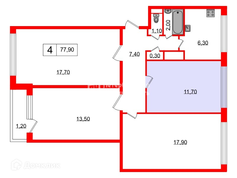 Общая площадь 77.9 м2