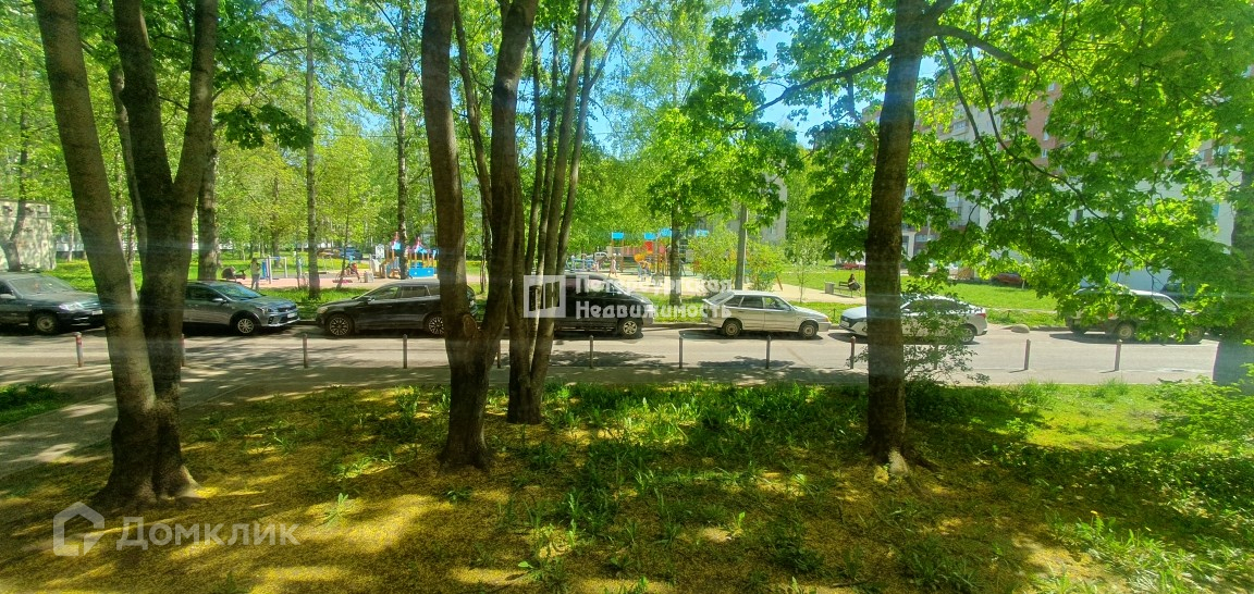 Окна в тихий зеленый двор с детскими и спортивными площадками.