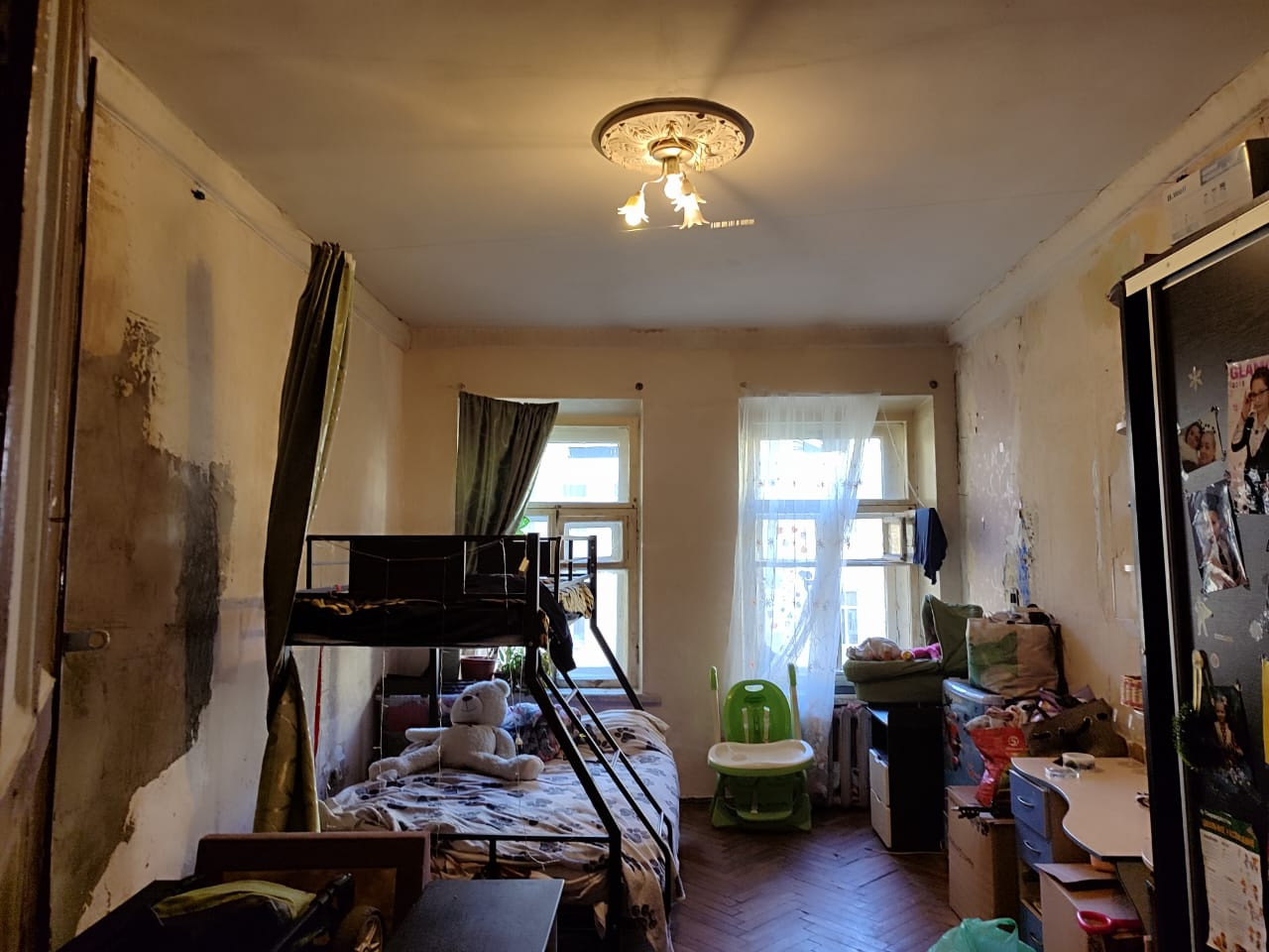 Просторная комната 18,8 метров с двумя окнами в трехкомнатной квартире.
