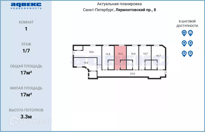 Общая площадь 17 м2
