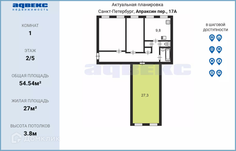 Комната, 54.54 м2, на продажу в Санкт-Петербурге, Апраксин переулок, 17