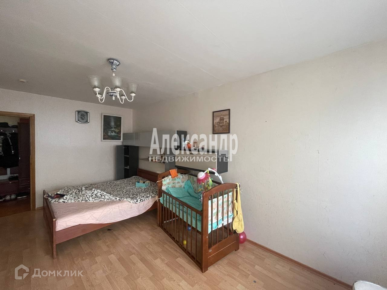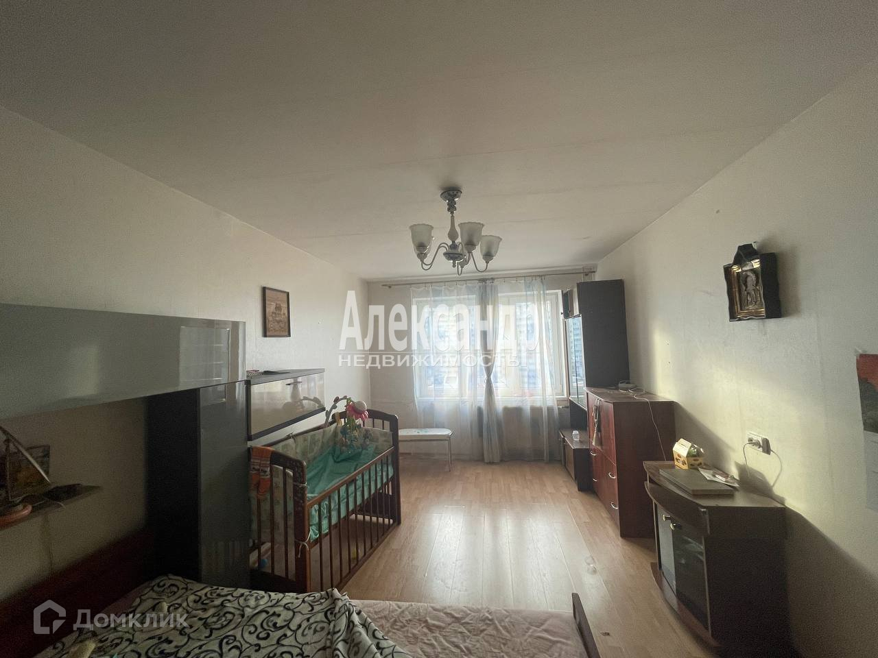 Комната правильной формы, что позволяет удобно разместить мебель, можно заезжать и жить.