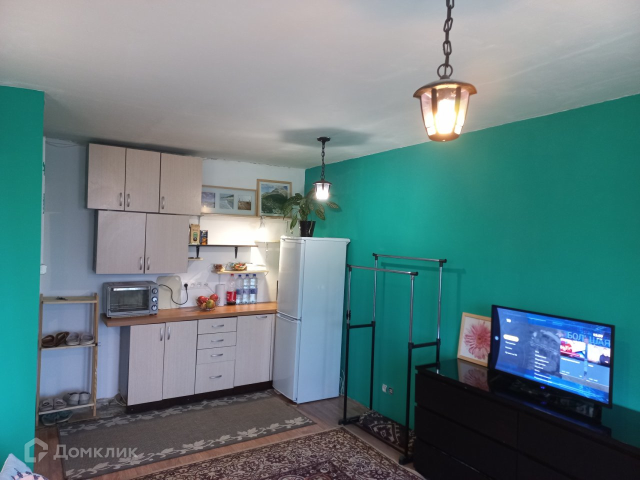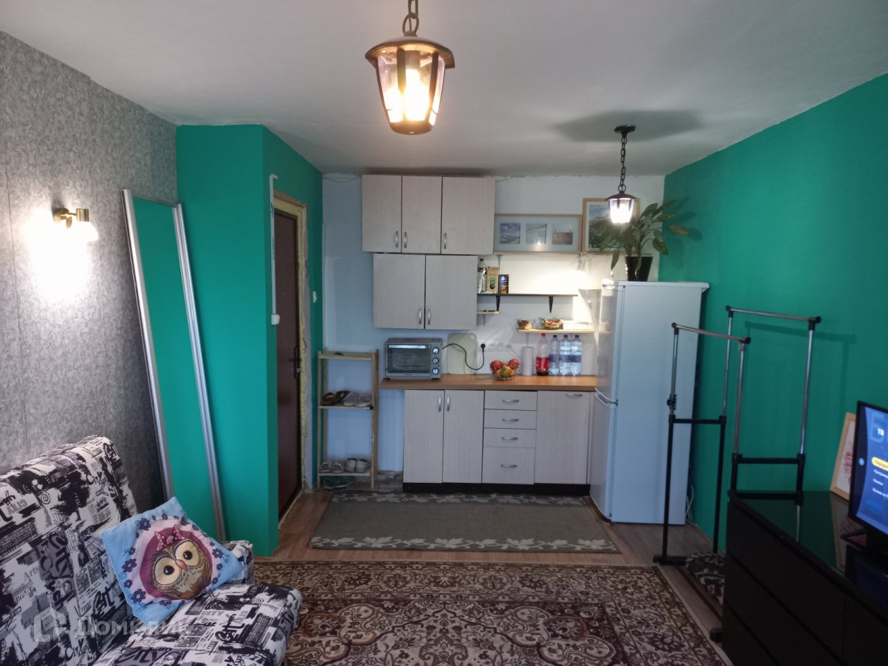 Сделан свежий косметический ремонт. Есть необходимая мебель и техника: раскладной диван, шкаф, холодильник,  кухонный гарнитур, ст.машина, большое зеркало.