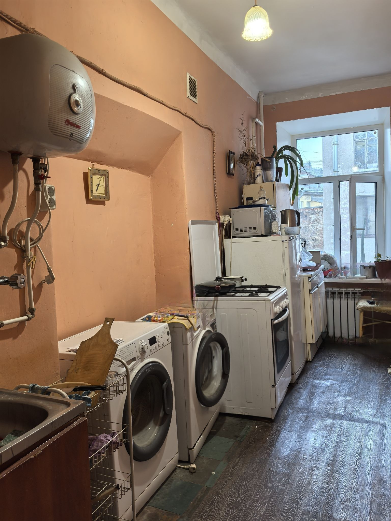 Сейчас проживают 2 человека. Общая площадь 4-х комнатной квартиры 82,3 м кв. Есть свое место на кухне, своя стиральная машина, свой бойлер. Комната продается как есть, вся мебель остается новому владельцу. Ремонт в комнате сделан в 2021 году. Высокие потолки. Мебель успели всю купить еще в IKEA, кровать докуплена в Hoff. Окна выходят в тихий двор, никакого шума и пыли улиц, при всех преимуществах проживания в одном из центральных исторических районов Петербурга! Перепланировок нет.