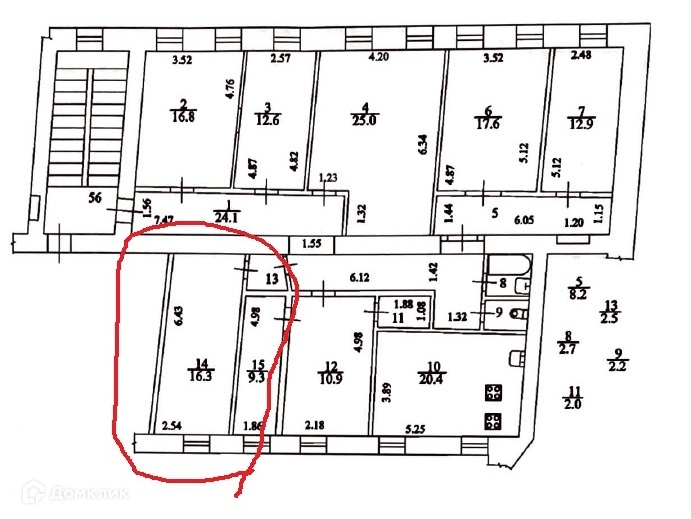 Жилая площадь 16.3 м2