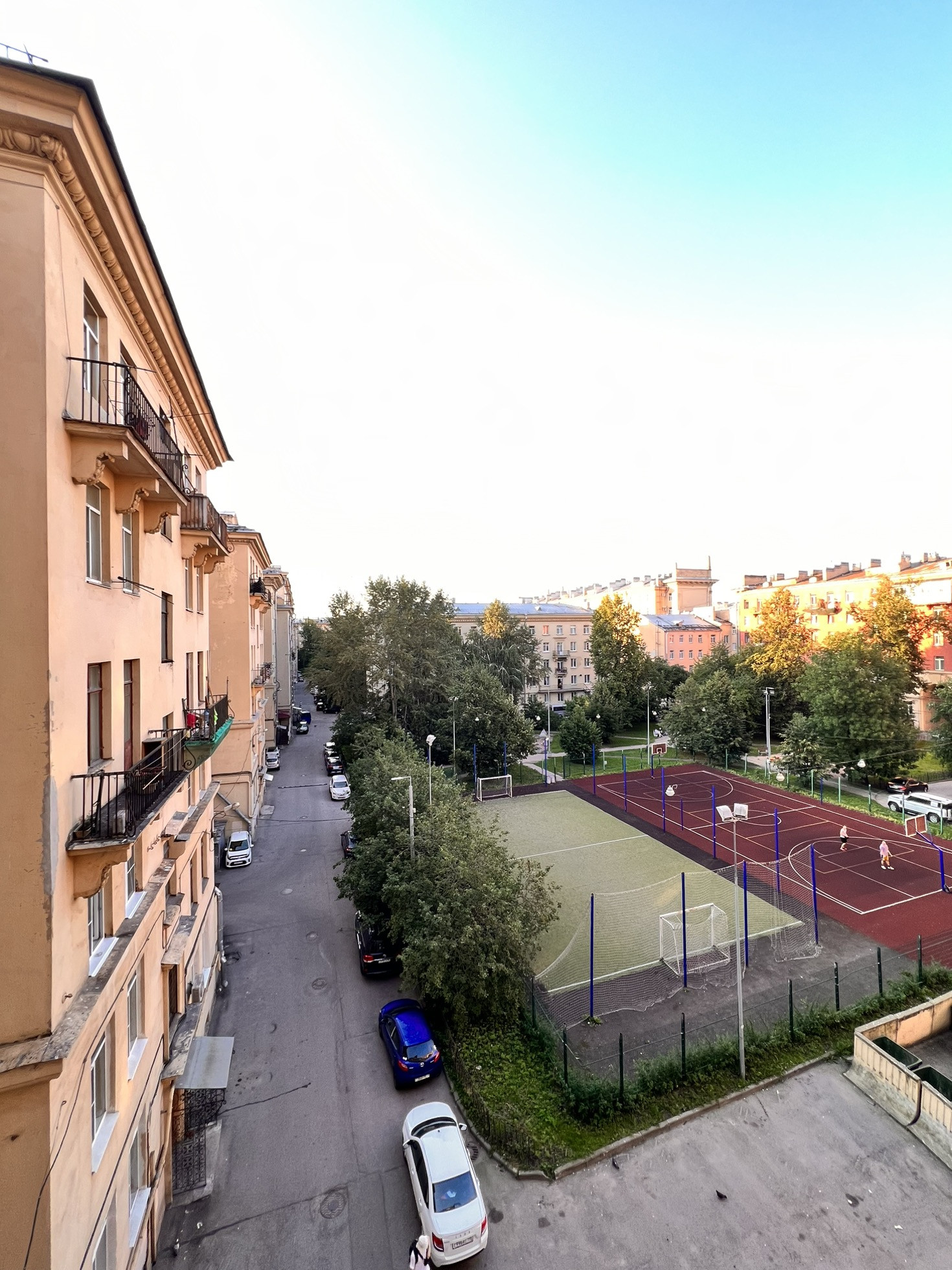 • Дом образует закрытый двор с достаточным количеством парковочных мест и различными современными детскими площадками и огороженным полем для игры в футбол и баскетбол.