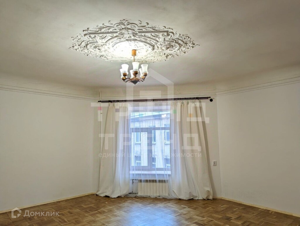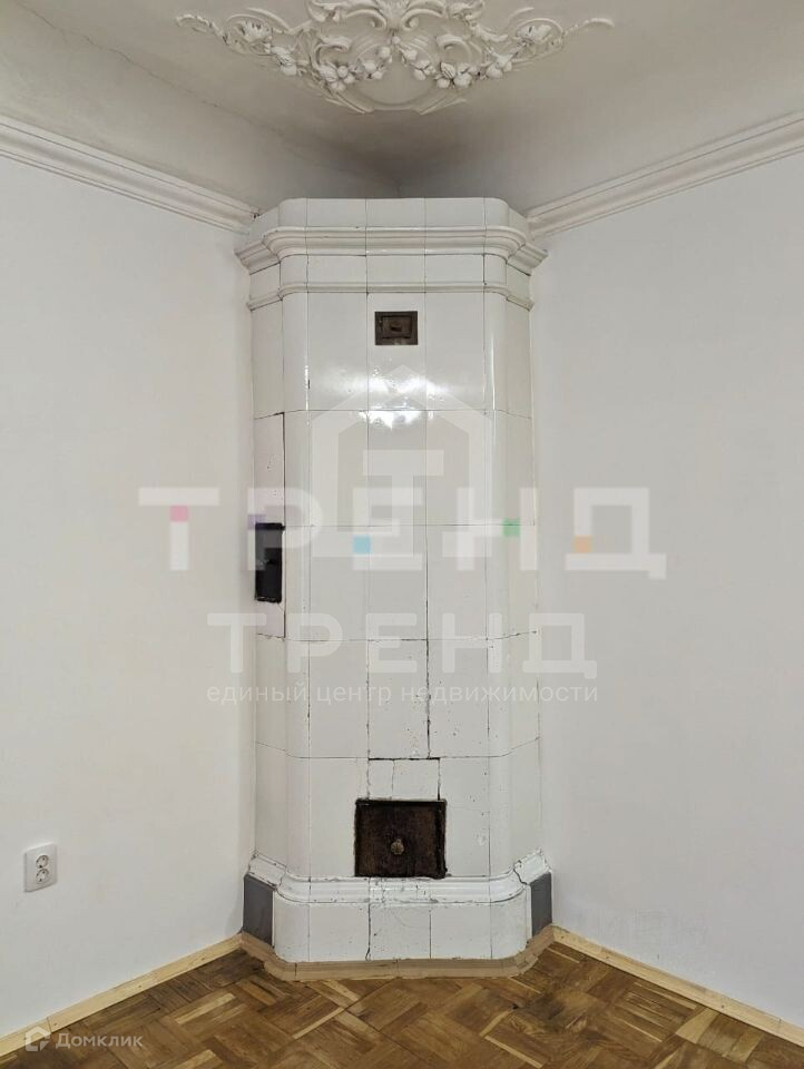 Помещение в очень хорошем состоянии; только что выполнен ремонт: выровнены и покрашены стены, полностью отреставрирован паркет, новые плинтуса, розетки и выключатели. Старинную печь и оригинальный потолок с лепниной не трогали, всё в отличном состоянии. Окно и батарея отопления поменяны. В комнате очень (очень!) тепло. Помещение идеально подходит для того, чтобы сделать студию: санузел примыкает к комнате, сама комната изолирована от всех остальных проживающих (никаких соседей за стеной, окно в тихий двор без машин).
