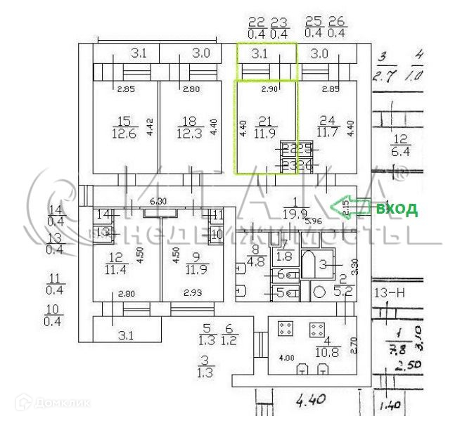 Жилая площадь 11.9 м2