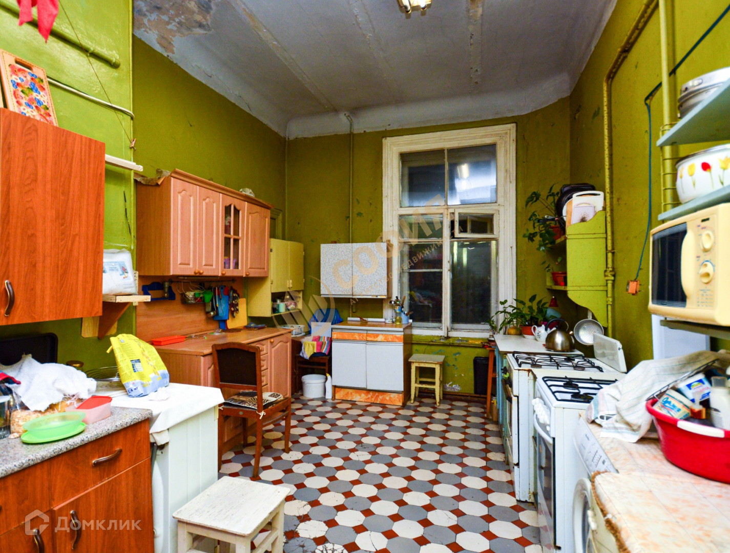 Арт. 69178188 В прямой продаже комната в 5-ти комнатной коммунальной квартире. Общая площадь квартиры 163.70 м2, комната большая, с двумя окнами 26.3 м2,  кухня 18 м2, ванна, 2 санузла. Высокие потолки 3,4 м2. Окна выходят в тихий двор на Восток. Двор охраняемый большой , под шлагбаумом.
