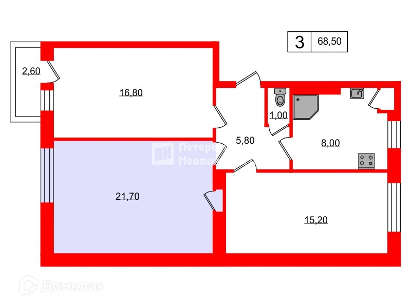 Общая площадь 68.5 м2