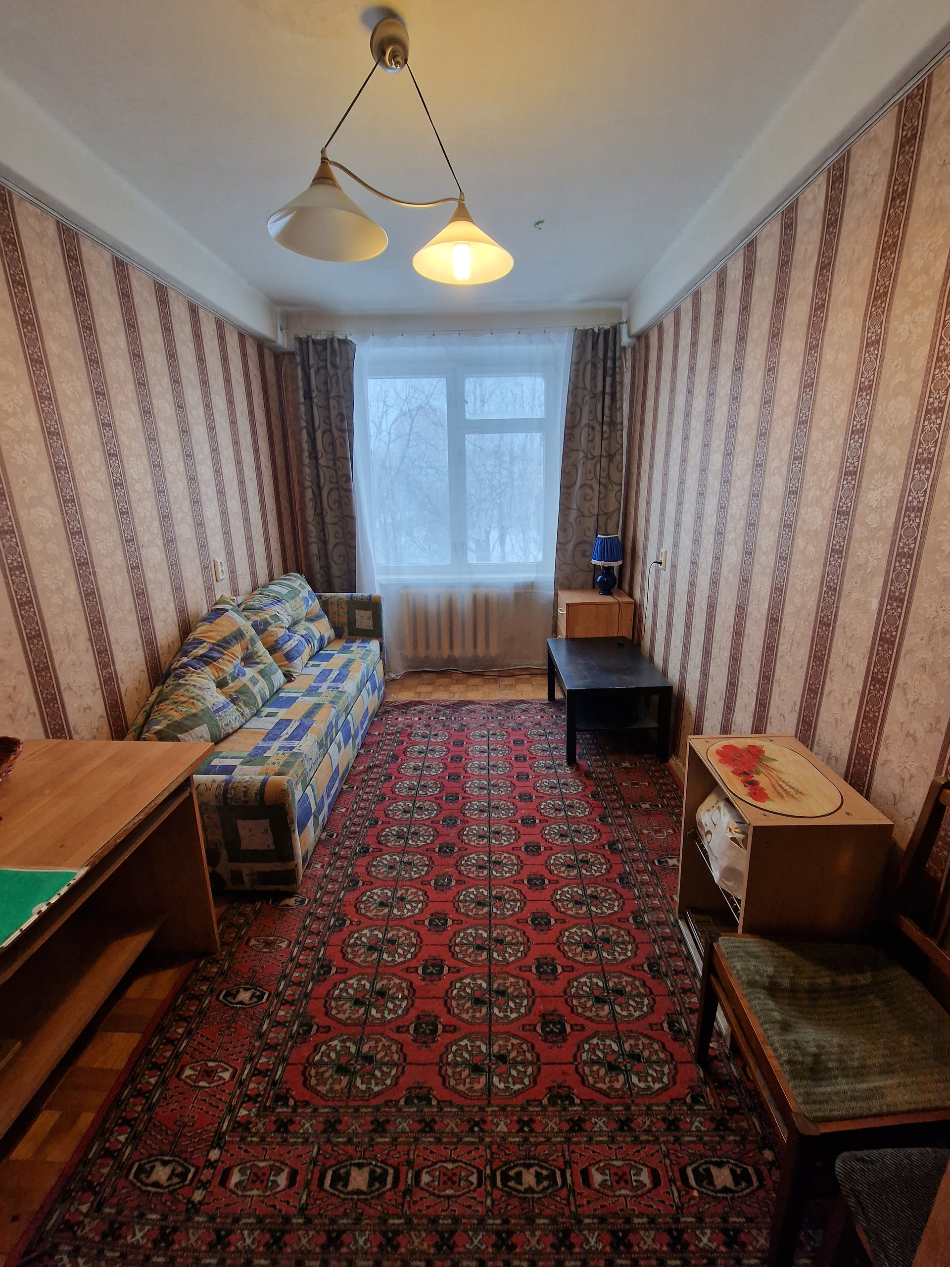 Крупнопанельный дом 1971 года постройки. Зеленый, благоустроенный район в окружении двух парков. Детские сады, школы, магазины, поликлиника  все рядом. Транспорт до трех ст. метро: пр. Ветеранов, Ленинский пр., Автово. Соседи: мама и взрослая дочь, муниципальные комнаты. Требуется косметический ремонт в местах общего пользования. ПП, никто не зарегистрирован.
