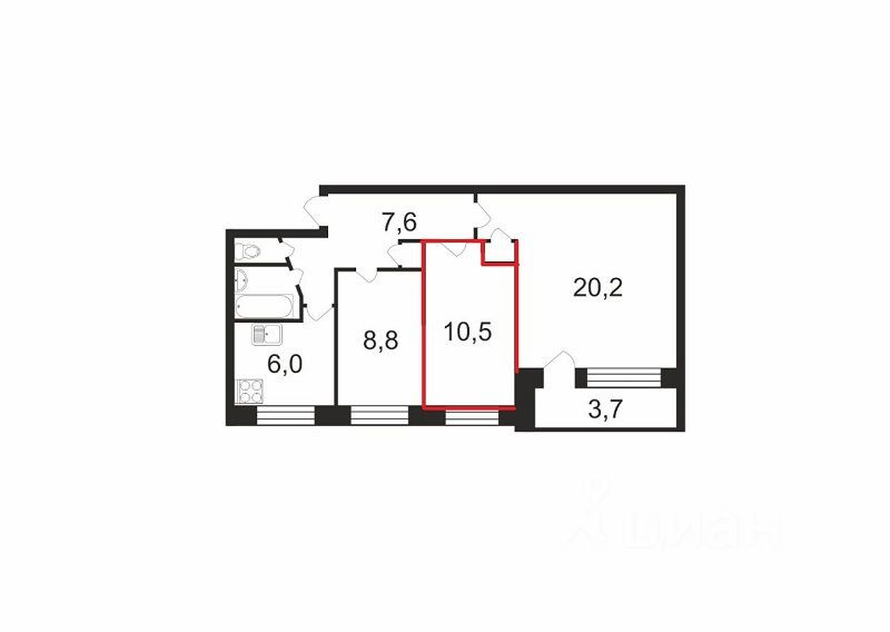 Жилая площадь 38.5 м2