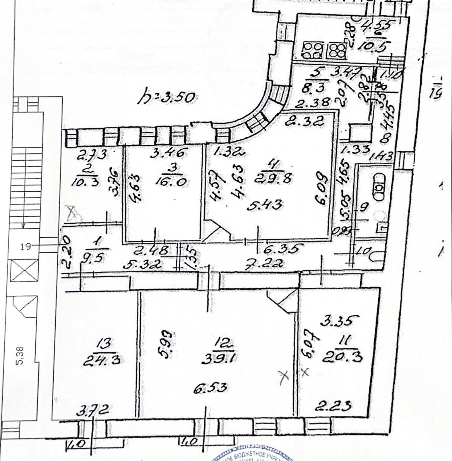 Пpoизвeден peмонт, уcтановлeн стеклопакет. Окна выходят на ул. Куйбышева. В квартире 6 комнат, три из которых в продаже данного собственника, возможен выкуп всех 20,3м² + 39,1м² и 10,3м² (в совокупности 69,7 м²). Потолки 3,5 м. Две раздельные кухни.