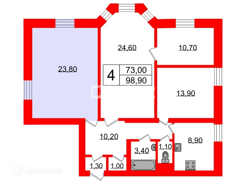 Общая площадь 98.9 м2