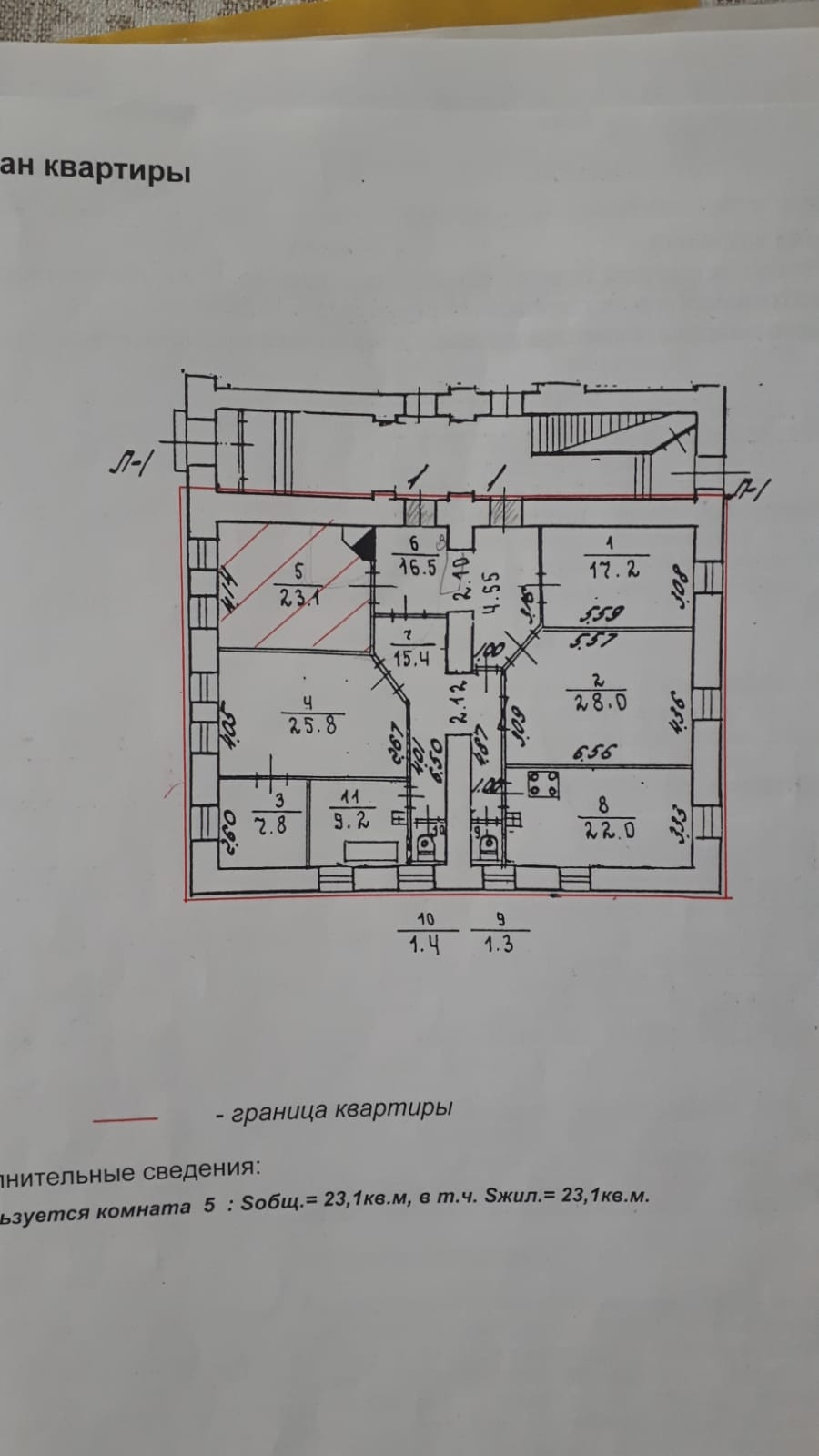 Площадь комнат