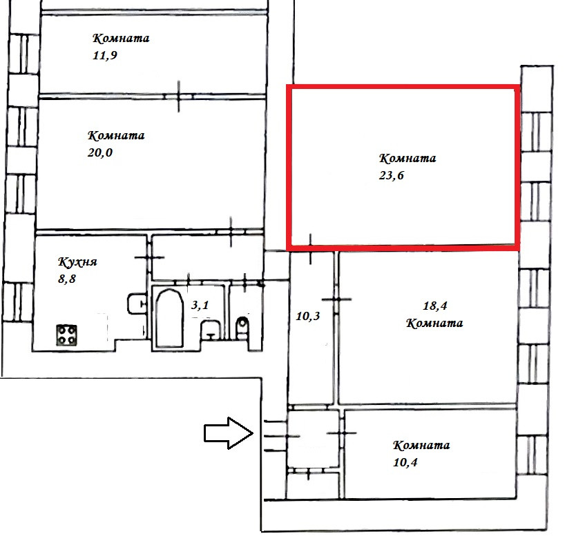 Жилая площадь 23.6 м2